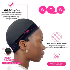 GripCap offers a strong, reliable hold to keep your wig or lace securely in place all day. With an adjustable strap, it comfortably fits any head size, eliminating the need to cut slip bands. The lightweight, breathable velvet material ensures your scalp stays fresh, and the cap remains virtually undetectable for a natural, seamless look. It’s reusable and machine washable, saving you money in the long run. Say goodbye to uncomfortable, flimsy wig caps and enjoy a secure, effortless wig-wearing experience daily.